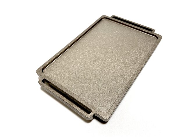 量産系の鋳物の鉄板によくみられる形状ですが、オーダーメイド鉄板は1枚1枚サイズが異なるため、フライス盤やマシニングセンタなど工作機械による「ポケット加工」で鉄板の内側にミゾを削り、浅いフチを形成します。